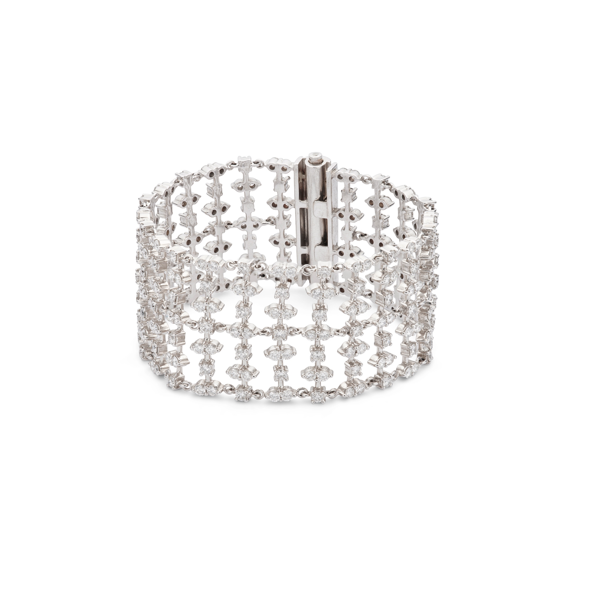 Designed as an openwork series of baton links, set throughout with brilliant-cut diamonds, to an integral clasp pavé-set with similarly-cut diamonds, diamonds approx. 13.50 carats total, length 17.6cm