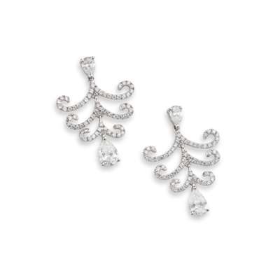 Each graduated series of brilliant-cut diamond scrolls, surmounted and suspending pear-shaped diamonds, diamonds approx. 2.00 carats total, post fittings, length 2.8cm