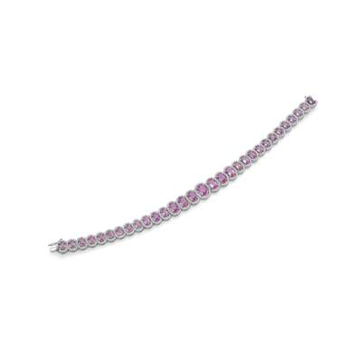 A pink sapphire and diamond line bracelet
