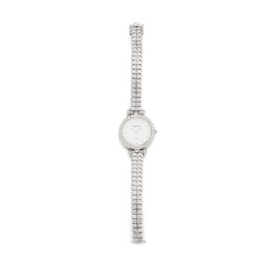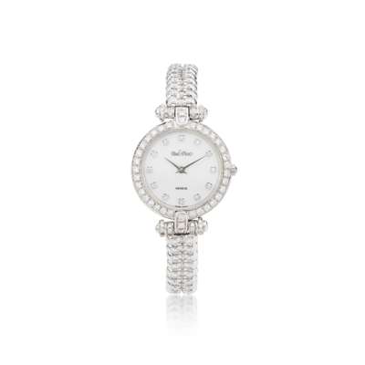 The white circular dial, with single-cut diamond hour markers, to a brilliant-cut diamond bezel, the 18 carat white gold bracelet set throughout with similarly-cut diamonds, diamonds approx. 6.90 carats total, dial and case signed Paul Picot, one diamond deficient, numbered, French assay mark, Swiss assay mark, European convention mark, maker's case and blank certificate of authenticity