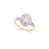 Centrally collet-set with an oval-cut diamond, within a brilliant and single-cut diamond scalloped surround, between similarly-cut diamond shoulders, mounted in 18 carat gold, principal diamond approx. 0.40 carat, London hallmark, ring size M