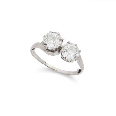 Set with two old brilliant-cut diamonds, in a crossover eight-claw setting, diamonds approx. 2.00 carats total, ring size M (sizing beads)