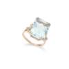 The rectangular scissor-cut aquamarine, in a double four-claw setting, between fleur-de-lys shoulders set with single-cut diamonds, aquamarine approx. 14.50 carats, ring size P½