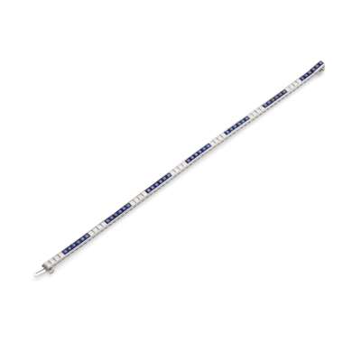 Channel-set with French-cut sapphires and princess-cut diamonds, to a concealed clasp, sapphires approx. 5.40 carats total, diamonds approx. 2.30 carats total, length 18.1cm