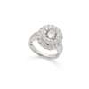 The oval-cut diamond, in a four-claw setting, within a double brilliant-cut diamond tiered halo, between similarly-cut diamond shoulders, diamonds approx. 2.30 carats total, ring size N