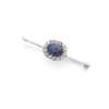 The oval-cut sapphire, within an old brilliant-cut diamond surround, to a later polished bar brooch, sapphire approx. 2.80 carats, diamonds approx. 1.10 carats total, width 5.0cm, cased