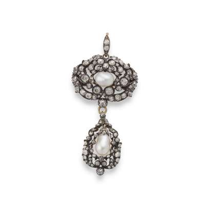 A pearl and diamond brooch / pendant, late 19th century