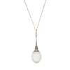 The oval cabochon moonstone drop, to a rose-cut diamond cap and pendant, surmounted by a collet-set old brilliant-cut diamond, to a later fancy-link chain, lengths: pendant 5.8cm, chain 39.0cm, fitted case by James R. Ogden & Sons Ltd., Harrowgate and at 41 & 41A Duke St., Piccadilly, London, S.W.1
