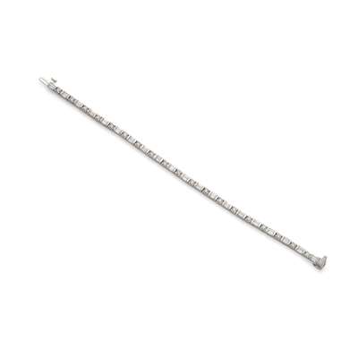 The line of alternating brilliant-cut diamonds and pairs of baguette-cut diamonds, to a concealed clasp, diamonds approx. 3.85 carats total, length 18.2cm