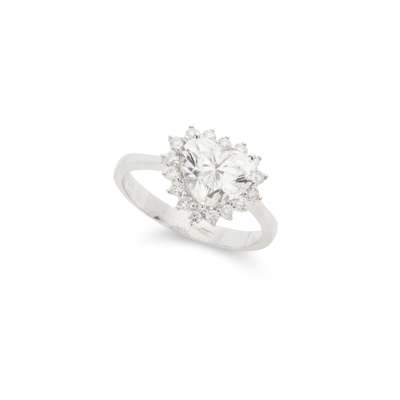 The heart-shaped diamond, weighing 2.05 carats, within a brilliant-cut diamond surround, remaining diamonds approx. 0.30 carat total, ring size P½
