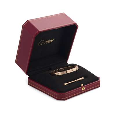 The polished bangle inset at intervals with ten brilliant-cut diamonds, signed Cartier, maker's mark, numbered, Cartier size 18, maker's case and screwdriver