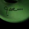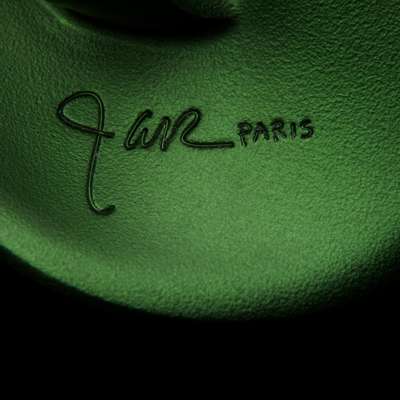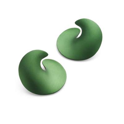 Each green anodized aluminium contoured hoop, signed JAR Paris, maker's marks, numbered, French assay marks, clip fittings, length 4.0cm, maker's pouch