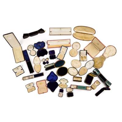 To include examples from Cartier, Boucheron, Mappin & Webb, etc. and non branded antique cases (35)