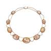 The series of oval shell cameos, carved to depict scenes from classical antiquity, including Helios driving the chariot of the sun, Venus and Cupid, and the centaur Chiron playing a lyre, connected by double trace-link chains, damage to one cameo, length 46.2cm, cased by Carrington & Co., 130 Regent St., W.