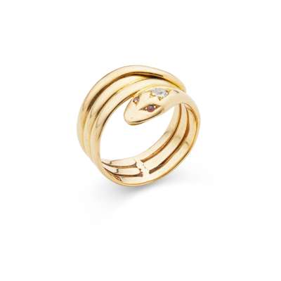 A gold and diamond snake ring, 1902-3