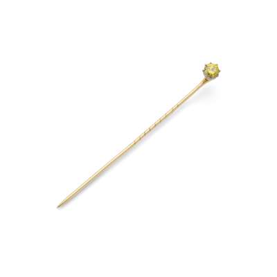 A Fancy Vivid Greenish Yellow diamond stick pin