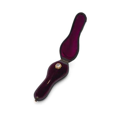 The oval-cut diamond, within a scrolling gallery, diamond approx. 0.95 carat, length 6.0cm, cased