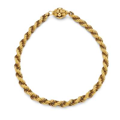Of multi-link twisted form, each link finely worked, to a repoussé barrel clasp, length 41.6cm