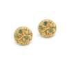 Each 18 carat yellow gold circlet, with finely worked foliate motifs, accented by circular-cut emeralds, maker’s mark DCS, London hallmark, post fittings, length 1.6cm