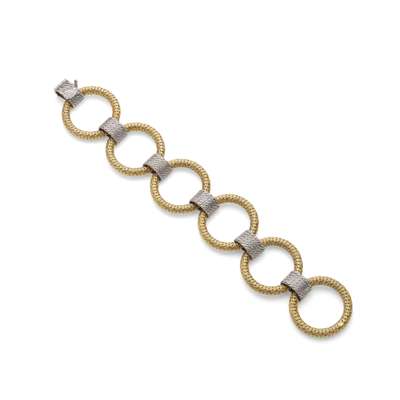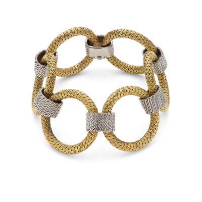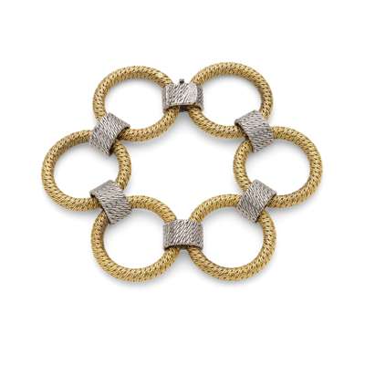 The series of oversized circular loops, linked by bi-coloured wide connectors, to a concealed clasp, maker's mark GL for Georges Lenfant, French export mark, length 20.8cm