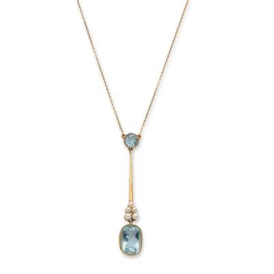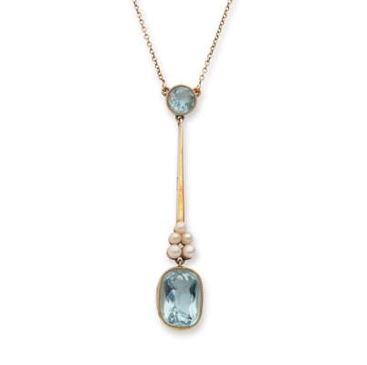 An aquamarine and seed pearl pendent necklace, circa 1910