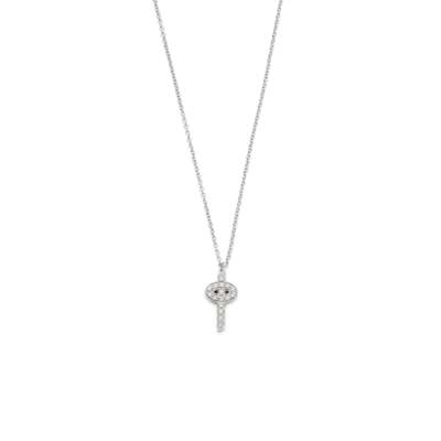 The 18 carat white gold belcher-link chain, suspending an oval pendant pierced by a vertical line, set throughout with brilliant-cut diamonds, maker's logo, maker's mark TF, London hallmark, lengths: pendant 1.9cm, chain 46.0cm