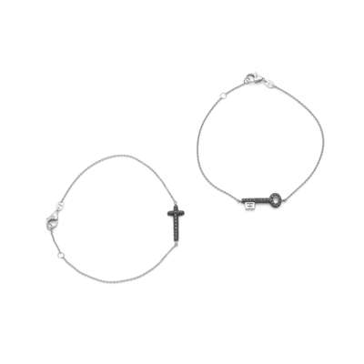 1st: The 18 carat white gold belcher-link chain centrally featuring a circular-cut black diamond key, 2nd: The 18 carat white gold belcher-link chain centrally featuring a circular-cut black diamond elongated Latin cross, signed Theo Fennell, maker's logos, maker's mark TF, London hallmarks, maximum lengths 19.1cm (2)