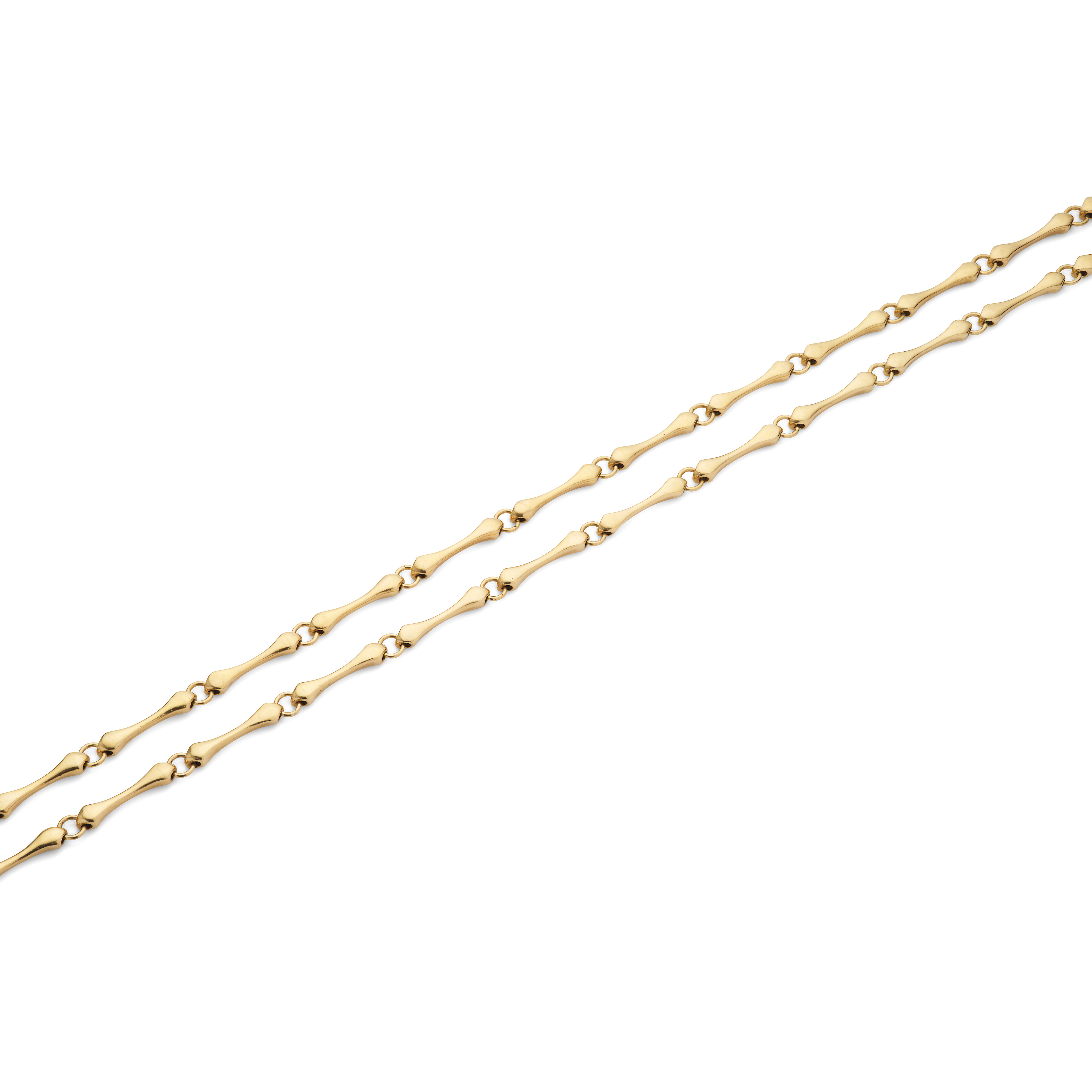 Designed as a continuous line of elongated polished 18 carat gold links, signed Uno A Erre, Italian assay mark, UK import mark, length 80.3cm