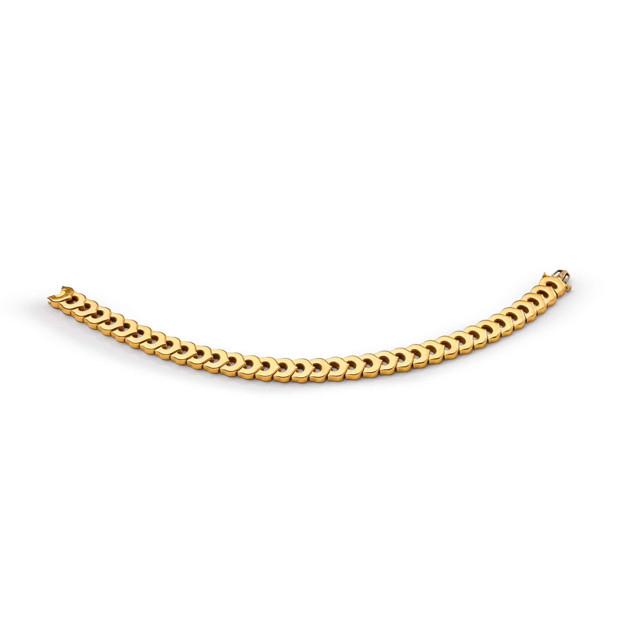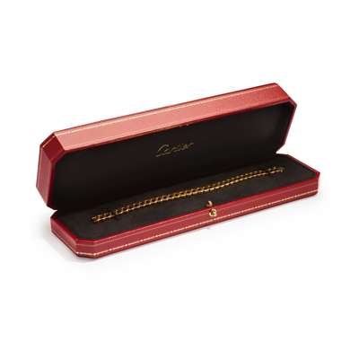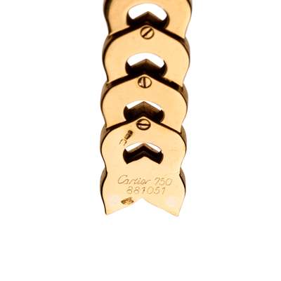 The articulated series of 18 carat gold ‘C’ shaped links, to a concealed clasp, signed Cartier, maker's mark JC, numbered, French assay mark, partial UK hallmark, European convention mark, length 17.8cm, maker's case and box