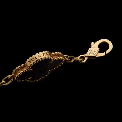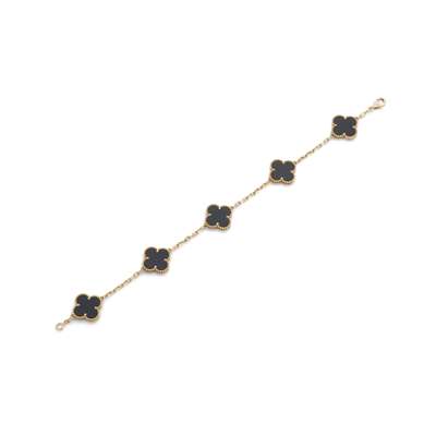 Van Cleef & Arpels: An onyx and gold 'Vintage Alhambra' bracelet