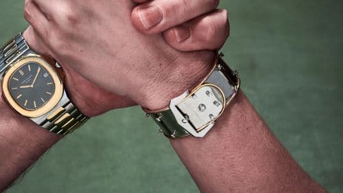 The buckle style bangle, scattered with brilliant-cut diamonds, each in a four-claw setting, within a bi-coloured frame, signed TH&M, diamonds approx. 0.70 carat total, inner diameter 5.3cm
