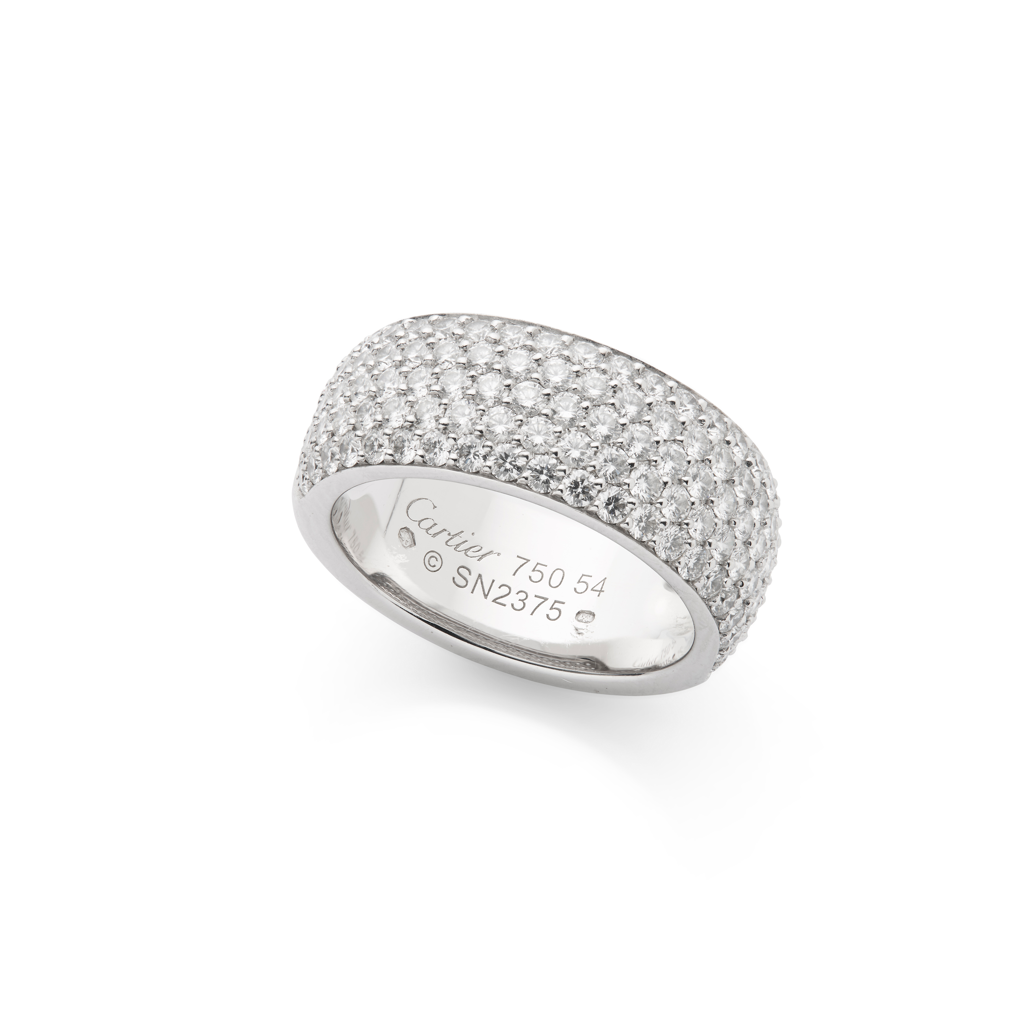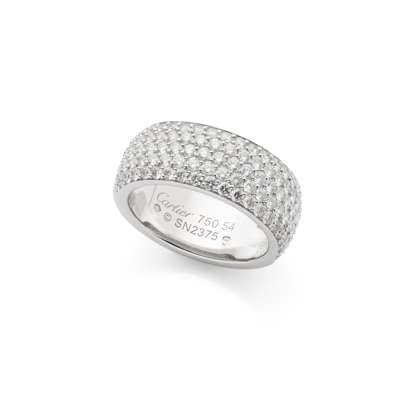 The 18 carat white gold band, pavé-set to the front with five courses of brilliant-cut diamonds, diamonds approx. 3.20 carats total, signed Cartier, numbered, European convention mark, Swiss assay mark, Cartier size 54, maker's case and box