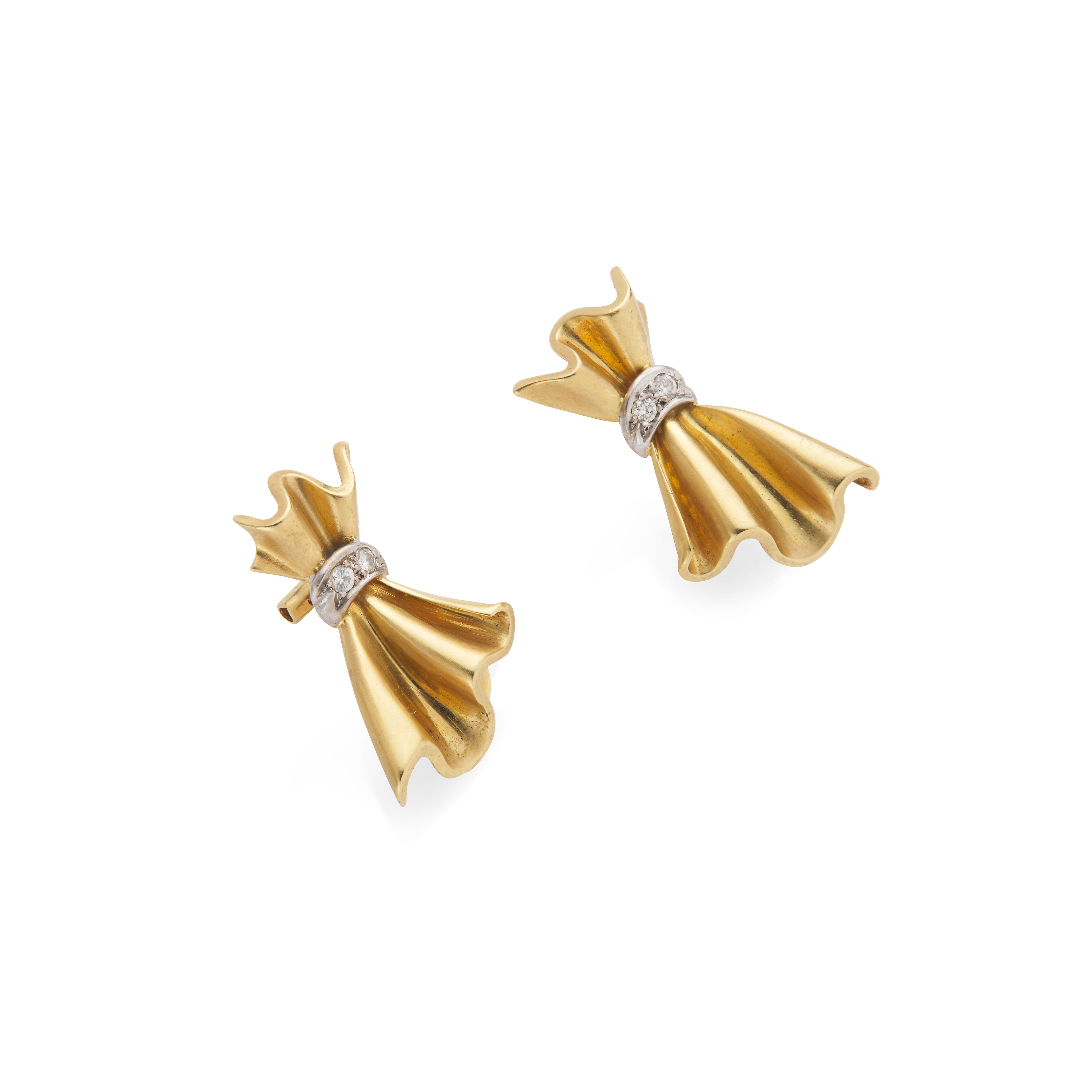 Each 18 carat gold undulating cluster, secured by a brilliant-cut diamond strap, signed Octavio Sardà, sponsor's mark SJR, UK import marks, post and clip fittings, length 2.6cm