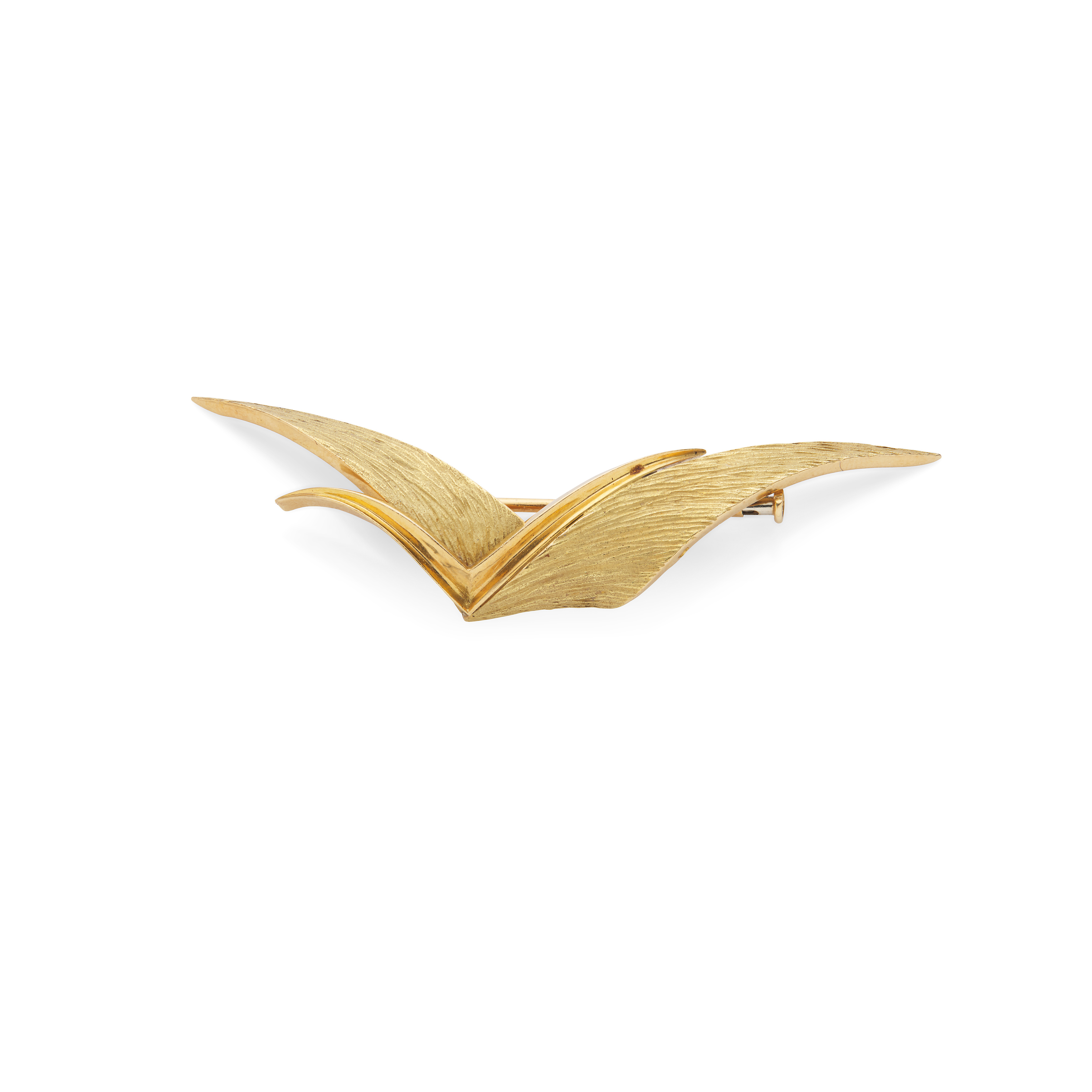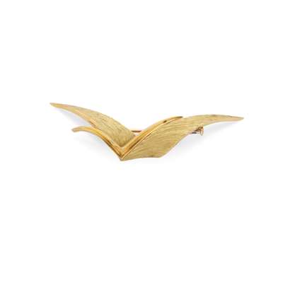 The stylised wings of polished and engraved brushed finish, signed Hermès Paris, maker's mark CF, French assay marks, width 6.5cm, maker's case
