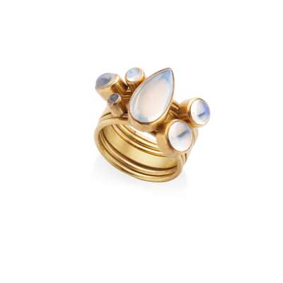 Wendy Ramshaw: A gold and moonstone ring stack, 2013 §