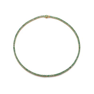 The necklace designed as a continuous line of circular-cut emeralds, each in a four-claw setting, emeralds approx. 6.90 carats total, length 33.5cm