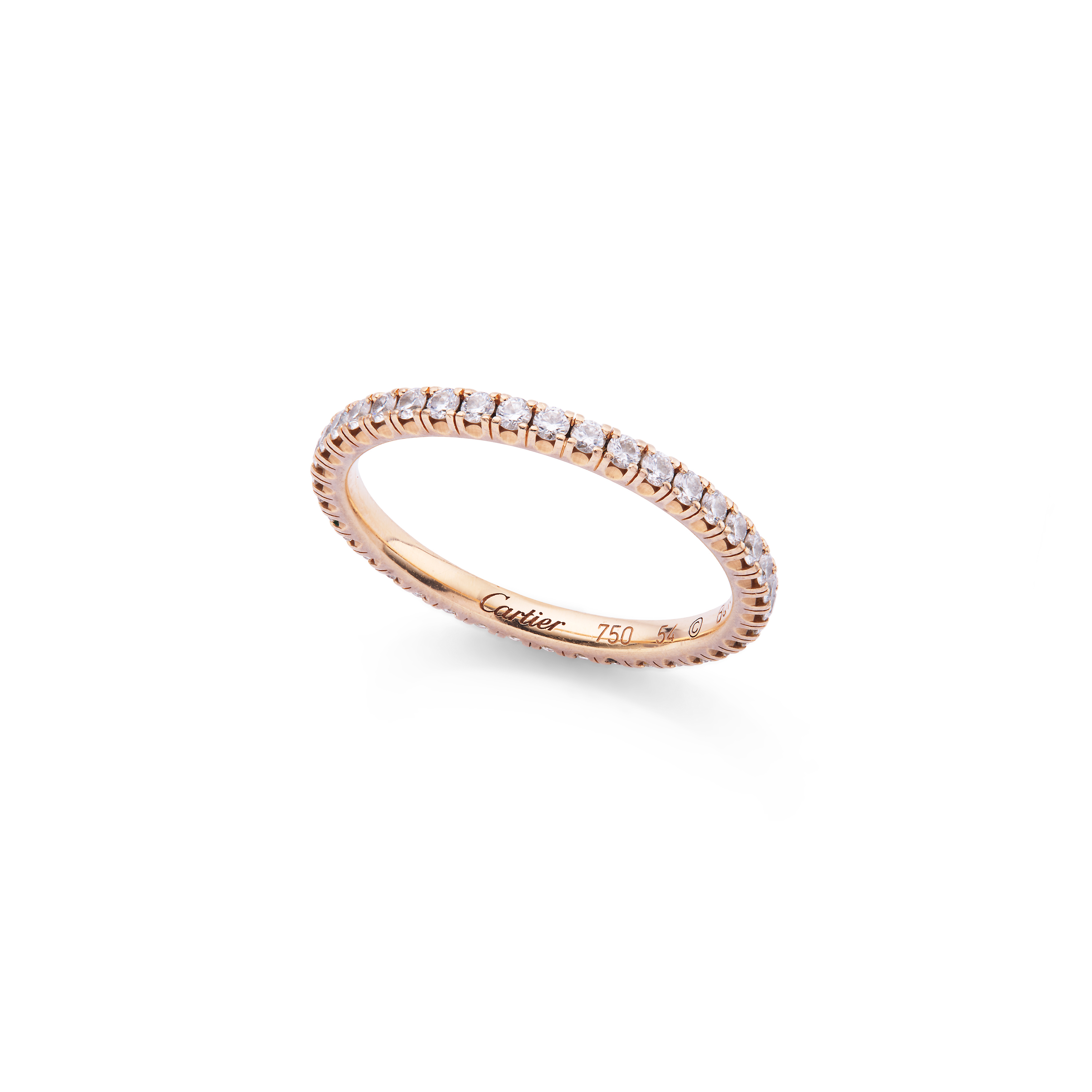 The 18 carat rose gold band set throughout with brilliant-cut diamonds, diamonds approx. 0.45 carat total, signed Cartier, maker's mark, European convention mark, Swiss assay mark, Cartier size 54, maker's case and box