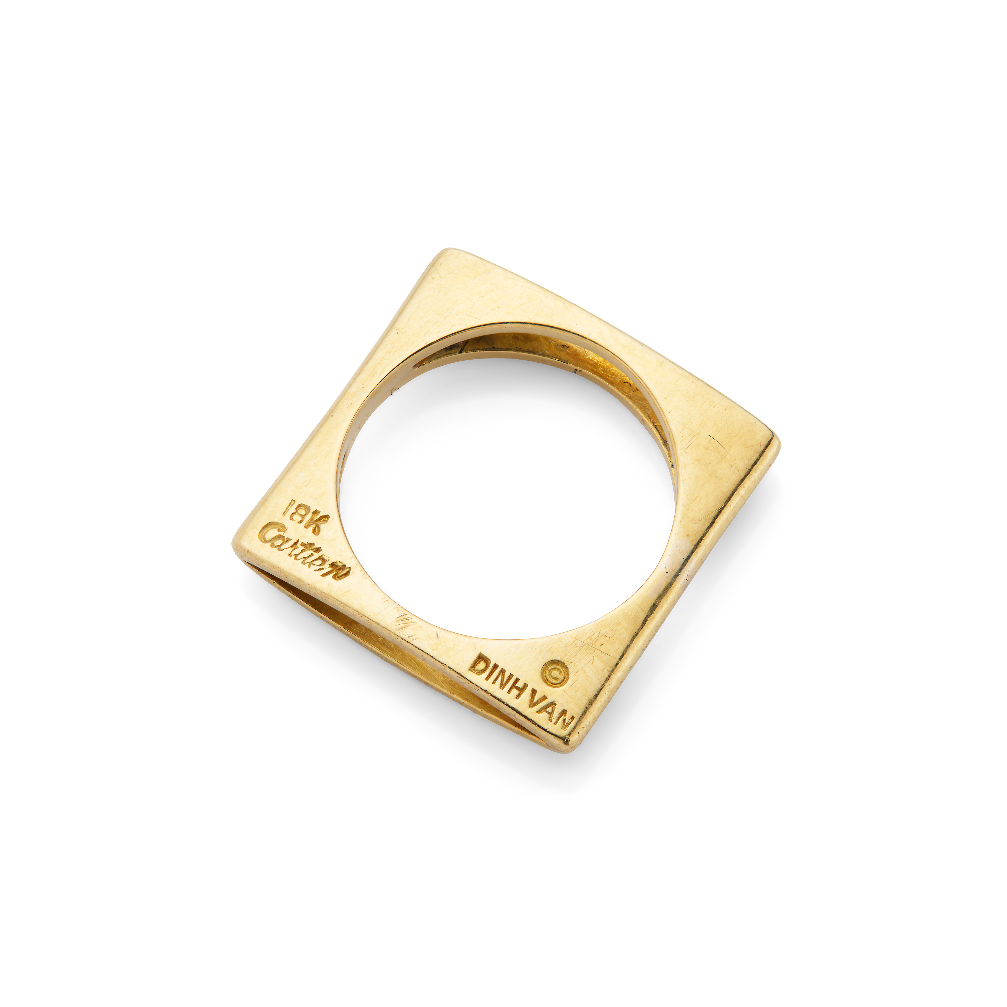 Of square outline, pierced centrally, signed Dinh Van and Cartier, ring size I½