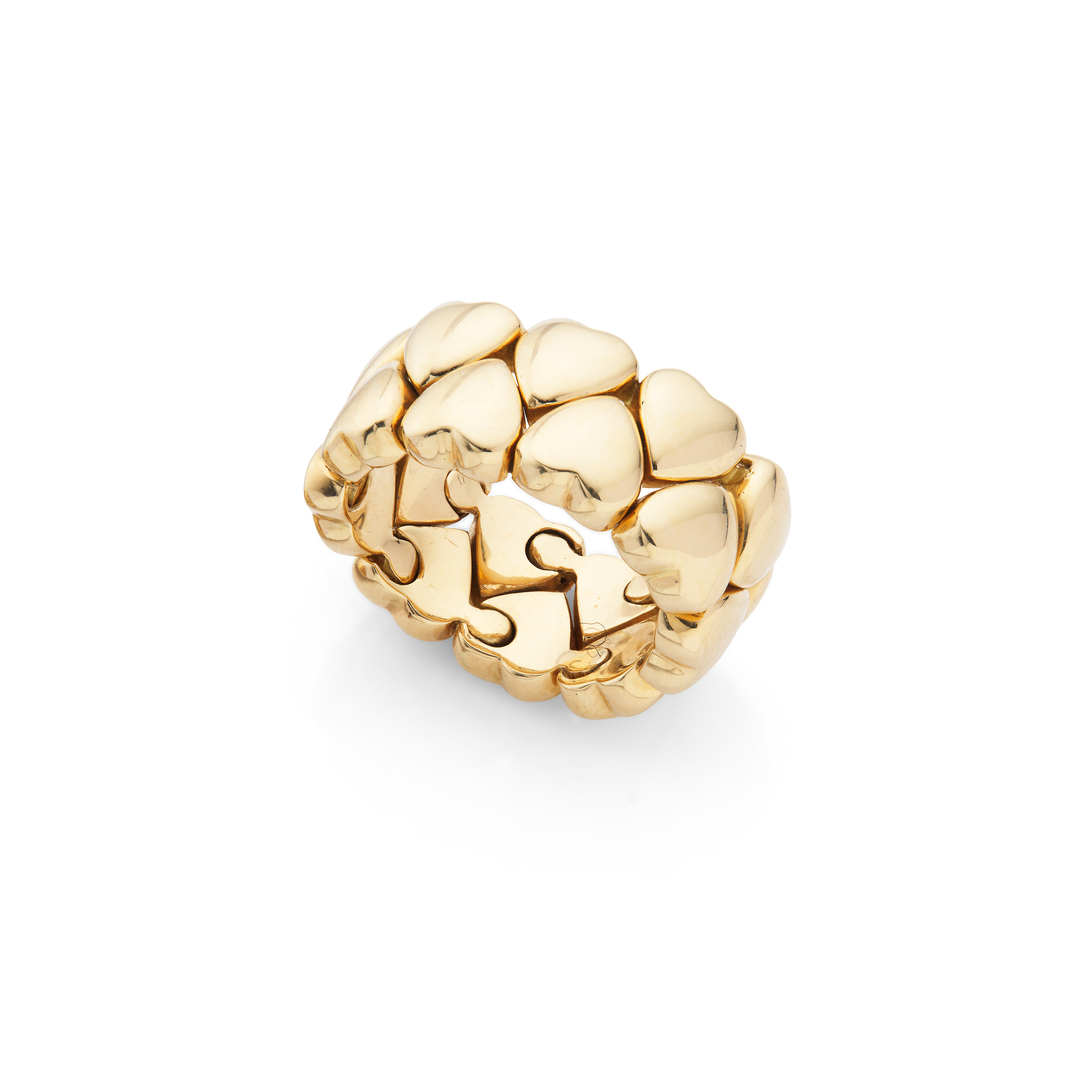 The flexible band designed as two rows of interlocking heart motifs, signed Cartier, numbered, Cartier size 52