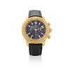 Cal.F185 self-winding 37 jewel movement, black dial with applied luminous baton indexes, outer minute track with 5 minute numerals, subsidiary dials for 30 minute and 12 hour registers, running seconds with date aperture, luminous hands, 18k yellow gold circular case with numbered screw-down reverse, screw-down crown and chronograph buttons, unidirectional bezel calibrated to 60 minutes, Blancpain signature to case band, on black leather strap with 18k gold Blacnpain folding locking buckle. Case, dial and movement signed.