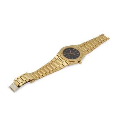 IWC. A very rare 18k gold quartz bracelet watch with Crowned Coat of Oman dial