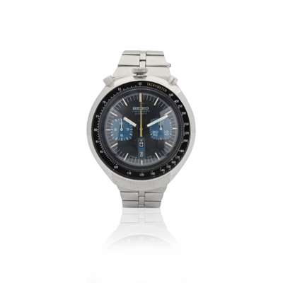 Cal.6138B self-winding 21 jewel movement, matt black dial with applied tritium baton indexes, white minute track, blue subsidiary dials for 12 hour and 30 minute chronograph registers, apertures for day and date in English, white/luminescent hands, orange chronograph seconds, substantial polished and satin finished case with screw-down numbered reverse, black tachymeter bezel, winding crown at 12 position flanked by chronograph pushers, on stainless steel Seiko Ref.ZC40S bracelet with folding clasp. Case, dial and movement signed.