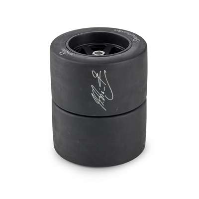 Accompanied by an Omega Speedmaster ‘Schumacher’ racing wheel presentation case within card Omega outer, dedicated wrench, watch holder, rectangular stabilizer, Omega brochure and blank Omega warranty card.