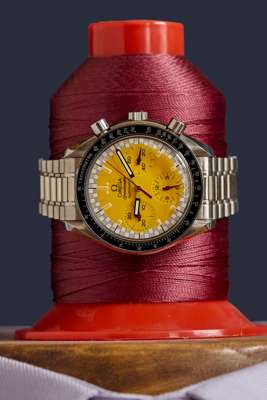 Omega released three coloured dial variations of the Speedmaster automatic ‘Michael Schumacher’ editions, these are categorized by collectors as follows; Red dial for Ferrari, Yellow for Michael's debut in 1991 with Jordan and Blue for Benneton.