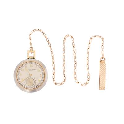Vacheron & Constantin. A fine and rare staybrite steel and 14k gold mechanical pocket watch with associated chain