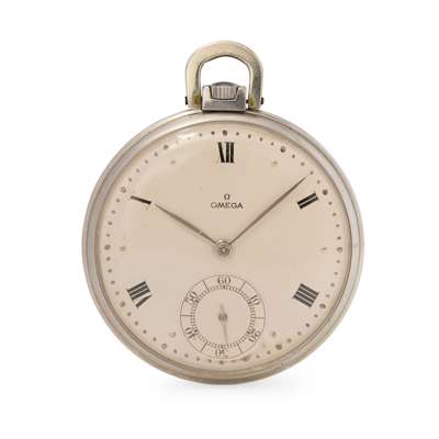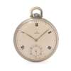 Hand-wound 15 jewel movement, silvered dial with outer minute dots, alternate steel dot and black Roman numerals, subsidiary seconds, steel leaf hands, stainless steel circular case with hinged bow. Case, dial and movement signed.