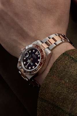 Rolex. A highly popular stainless steel and pink gold automatic dual-time wristwatch
