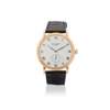 Cal.215 hand-wound 18 jewel movement with Geneva seal, white dial with black Roman numerals, blackened gold leaf hands, subsidiary seconds, two-piece 18k pink gold polished and satin finish case with hobnail bezel, straight lugs, on black crocodile Patek Philippe strap with 18k pink gold Patek Philippe pin buckle. Case, dial and movement signed.