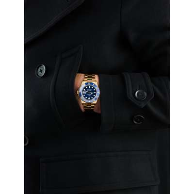 Cal.3235 self-winding 31 jewel movement, Royal blue dial with Chromalight luminous dot, triangle and baton markets with gold collets, gold luminous Mercedes hands, centre seconds, date aperture under magnifying lens, sapphire crystal, 18k yellow gold Oyster case with screw-down reverse and Triplock crown, blue unidirectional Cerachrom ceramic bezel calibrated to 60 minutes, on 18k yellow gold Rolex Oyster bracelet with Oysterlock clasp and Glidelock feature. Case, dial and movement signed.