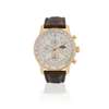 Self-winding movement, white dial with faceted rose gold and luminous batons, subsidiary dials for running seconds combined with date and seasons, weeks of the year with moonphase aperture, 12 hour chronograph register with days of the week and 24hr indicators, 30 minute chronograph register with month and leap year indicator, outer tachometer scale with bidirectional revolving outermost scale, 18k rose gold case with screw-down numbered reverse with dedication, inset calendar adjusters to the band, revolving bezel, on dark brown crocodile Breitling strap with 18k rose gold Breitling folding buckle. Case, dial and movement signed.